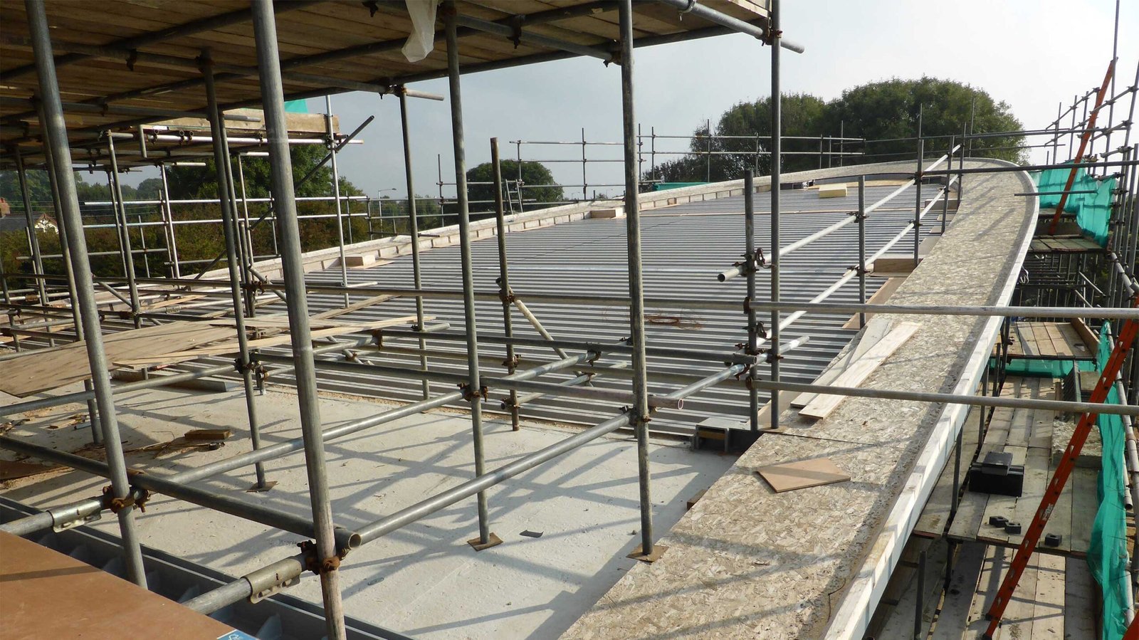 Weatherproof protection for construction sites with shrink wrap or sheeted roof scaffolds, keeping your project dry and on schedule.